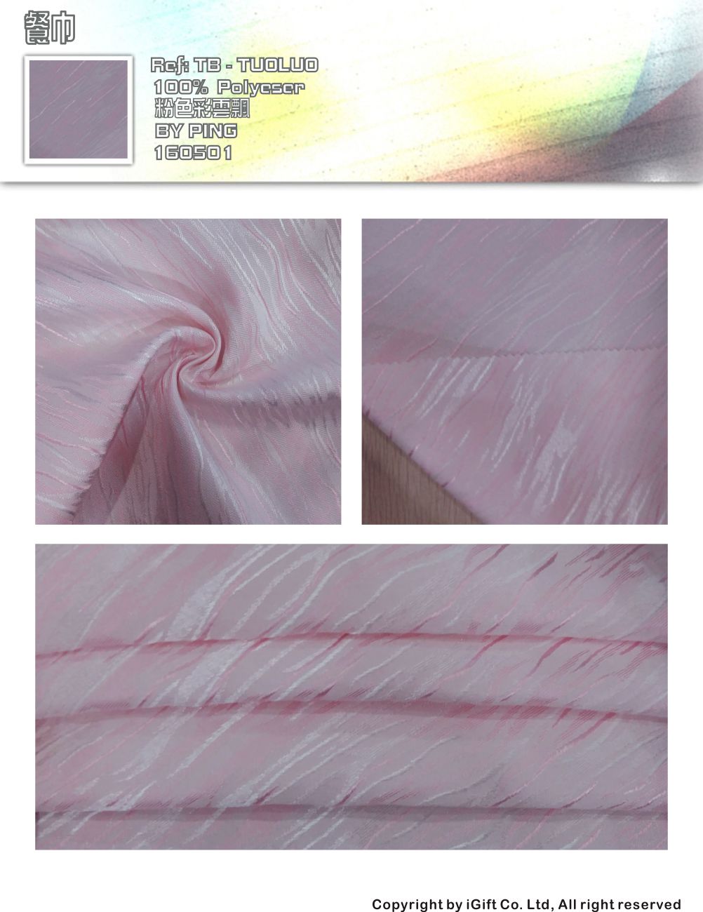 TB-TOLO 餐巾-粉色彩雲飄  餐飲布草  成份:100%Polyester 正面照